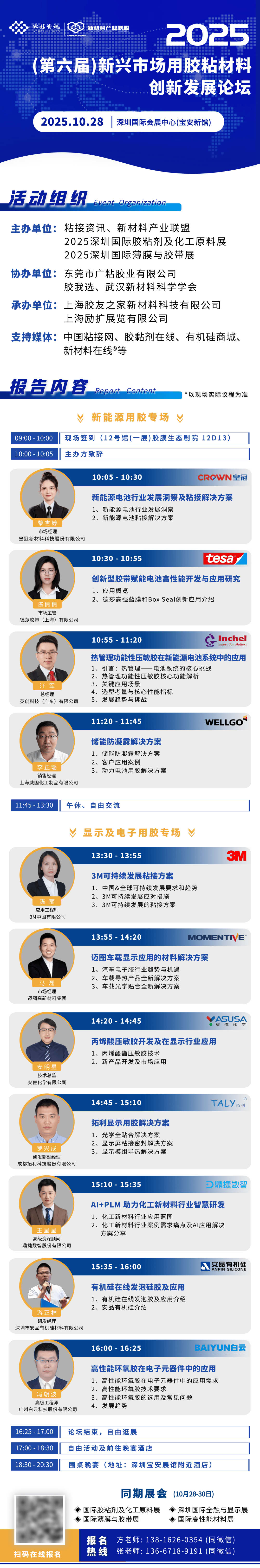 关于推荐您关注10月28日深圳举办的“2025(第六届新兴市场用胶粘剂创新发展论坛”,详情如下: