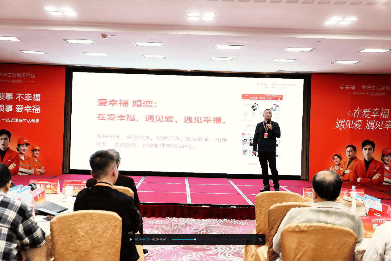 会上,爱幸福平台正式发布了以 “为爱而生” 为核心的创新服务体系。平台创始人李耿衍在主题演讲中表示:“我们的目标不仅是解决社区居民的生活需求,更是要构建一个有爱、有温度、有深度的社区幸福生态。”