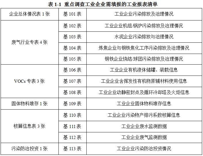 所有参与统计调查的工业企业必须提交工业企业污染物和温室气体排放及治理情况表(基101表)。
