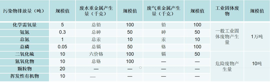 ●对化学需氧量等常规污染物采用排放量筛选,对重金属污染物、一般工业固体废物和危险废物采用产生量筛选。