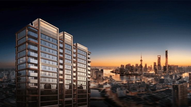 其中高层外立面昭示性十足!采用仿红砖陶板、优美柔和的设计元素、白色石材窗板以及古铜色金属线条设计,实现海派复古与现代建筑美学碰撞的艺术,颜值满分!