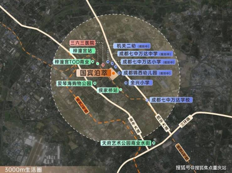 目前,在国宾泊萃周边已形成“3公里醇熟生活圈”——医院,学校,双TOD等一应俱全,生活的美好画卷正铺陈开来: