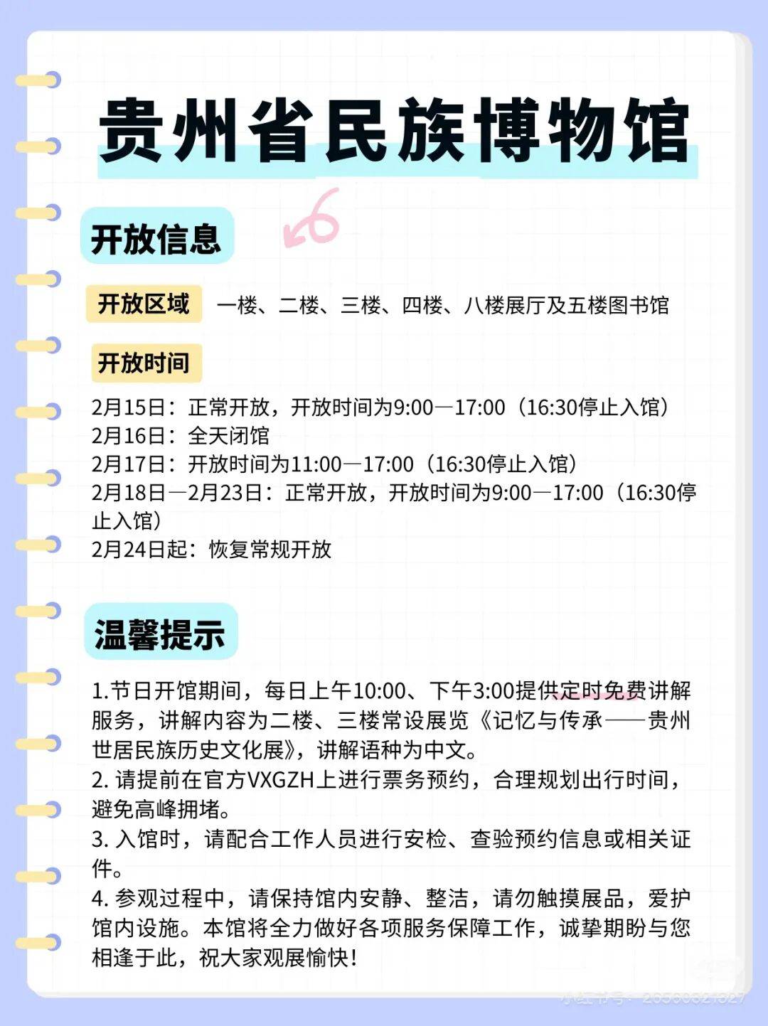 2月15日(腊月廿八):正常开放,开放时间为9:00-17:00(16:30停止入馆);
