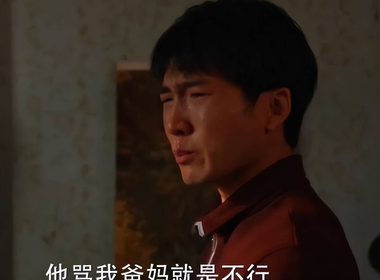 他那段哭戏可以称为教科书式演技,在说自己被压榨时是哽咽没有哭腔的,直到说"还骂我爸妈没出息"时,才嚎啕大哭,眼泪和鼻涕哗啦啦流了下来。