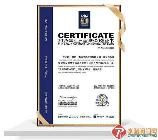 9月24日,由世界品牌实验室主办的2025年(第二十届)亚洲品牌大会在香港JW万豪酒店隆重举行。在这场以全球关税壁垒背景下,亚洲品牌如何利用人工智能实施营销战略为主题的高端论坛上,惠达卫浴第七年荣登《亚洲品牌500强》榜单,与海尔、丰田、索尼、华为等亚洲顶尖品牌共同获得这一殊荣。